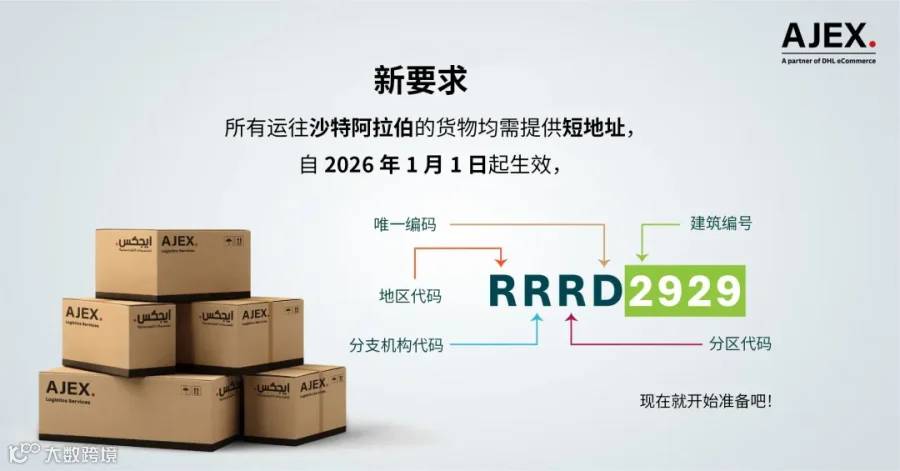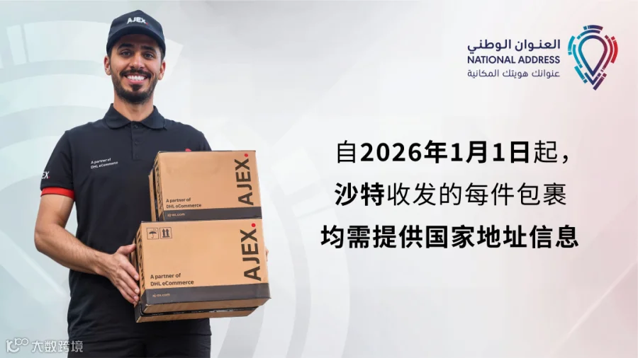生效日期:2026年1月1日起,所有进出沙特的国内及国际包裹必须使用国家地址系统。
