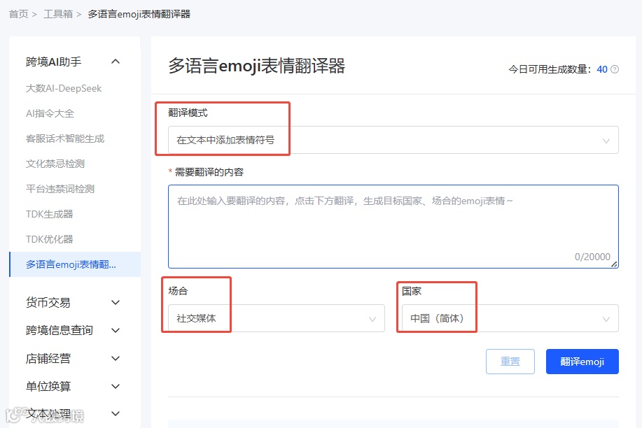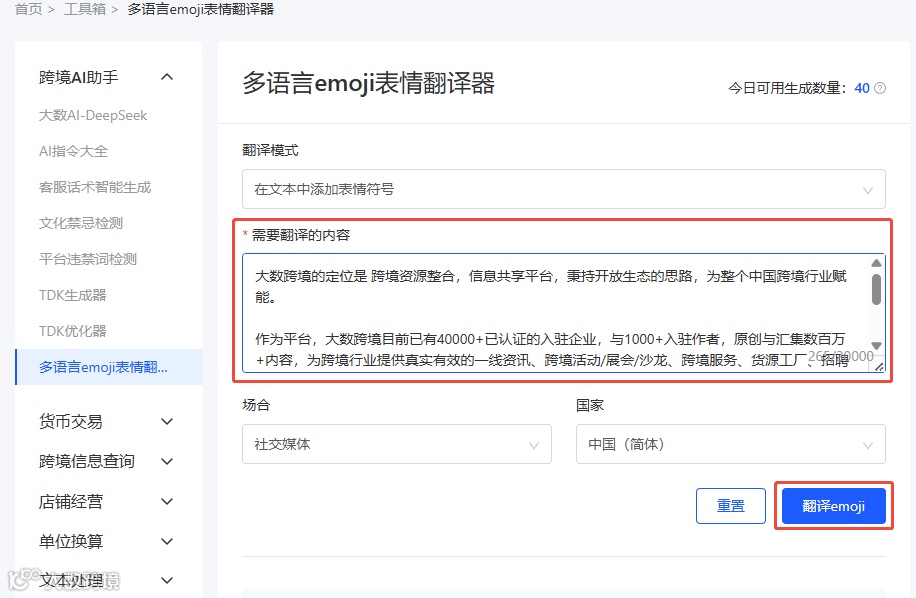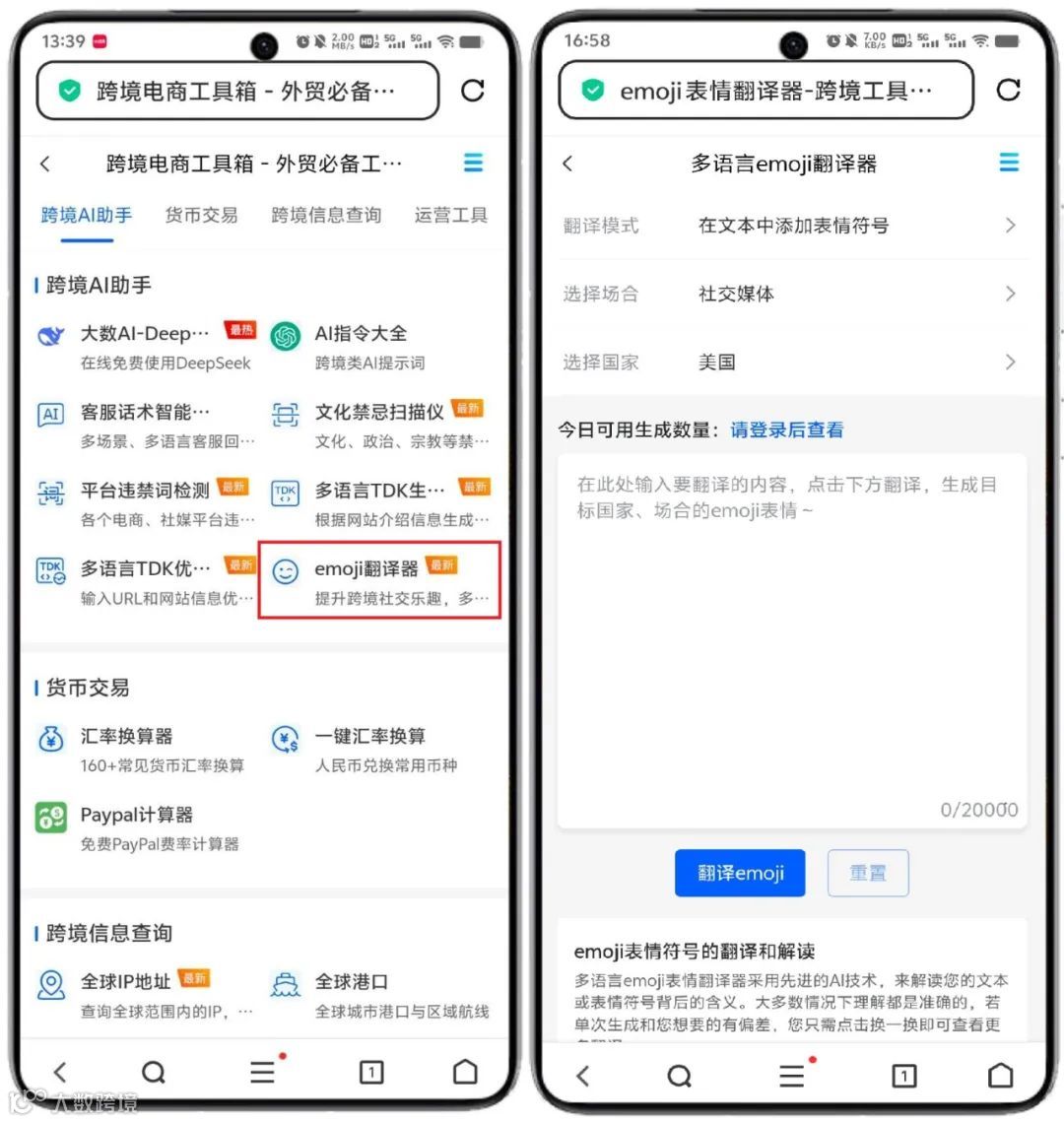 【emoji翻译器】可以针对不同的国家、不同的场景,生成或翻译不同的内容。有时候,一个小小的emoji表情可能就会成就一笔大订单!