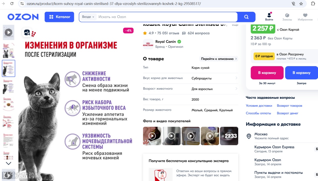 俄罗斯本土垂直宠物电商,专注宠物食品、用品。精准流量,适合专业宠物品牌。