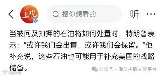 特朗普在声明中明确表示,美国不仅将永久占有该油轮本身,船上所载原油也将被纳入美国本土能源体系,或用于战略储备或进行市场化处理。
