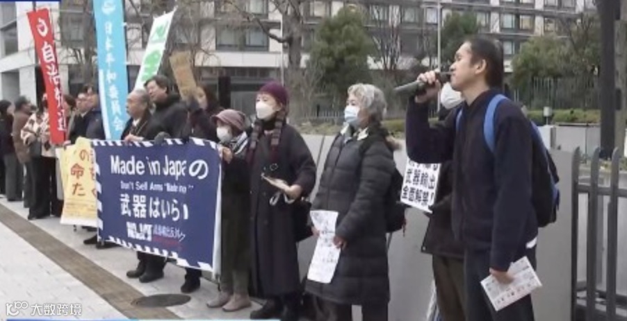 当地时间12月25日下午,日本民众在东京市自民党总部以及国会前组织抗议集会,反对日本武器出口。