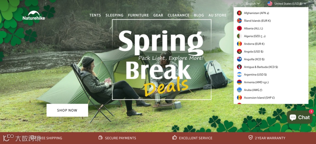 于是在2017年,Naturehike主动出击,从一款专业露营徒步帐篷开始,拓展亚马逊、速卖通、Shopify以及品牌独立站等海外渠道,目前已经畅销80多个国家和地区。