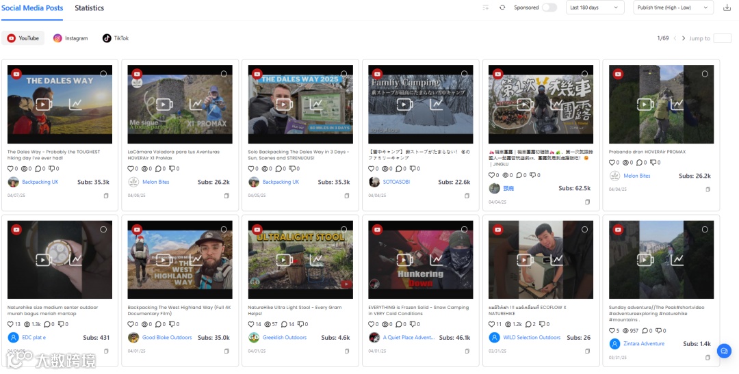 我们通过SocialBook【竞品监听】功能看到的,Naturehike合作的庞大红人数量就是最好的证明。