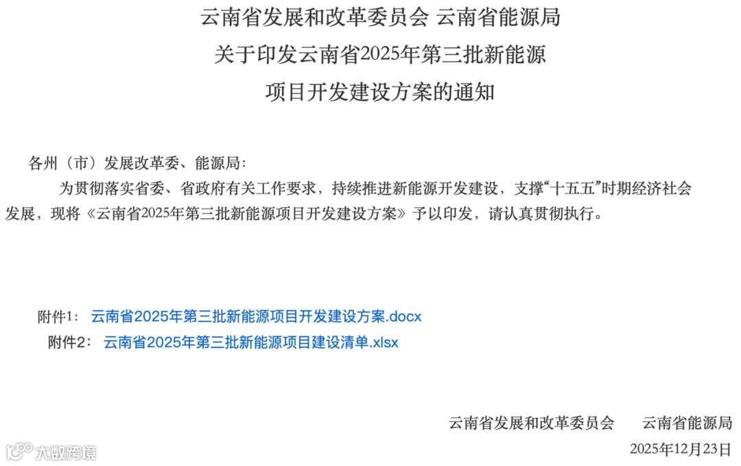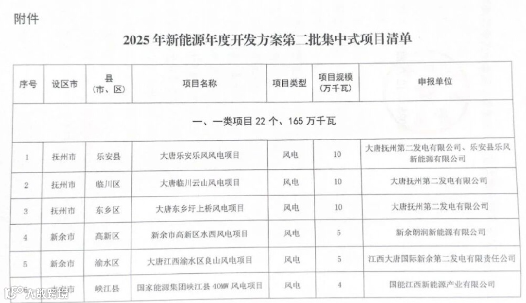WindDaily获悉,江西、云南两省近日下发8.36GW风电项目指标。其中:列入江西省2025年新能源年度开发方案第二批集中式项目清单的项目共 27 个、风电装机容量 202.5 万千瓦;纳入云南省2025年第三批新能源项目开发建设方案实施的项目共221个,装机1407.633万千瓦,其中风电项目117个,装机633.554万千瓦。详情如下: