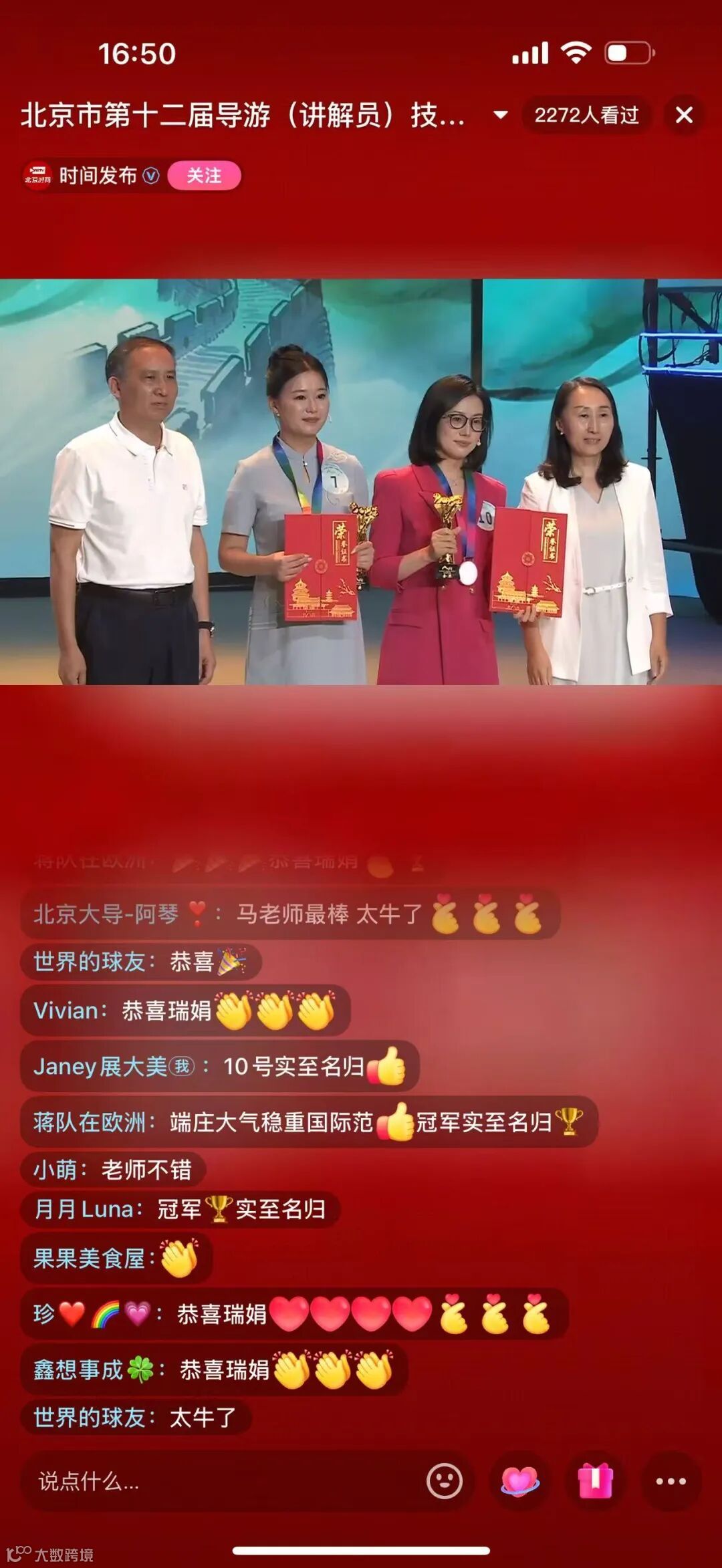 此次刘瑞娟在大赛中夺冠,不仅为华程国旅集团增添了荣誉,也为北京市导游行业树立了榜样。感谢大赛主办方,未来,华程国旅集团将继续加强领队导游人才培养,为提升旅游服务质量贡献更多力量。