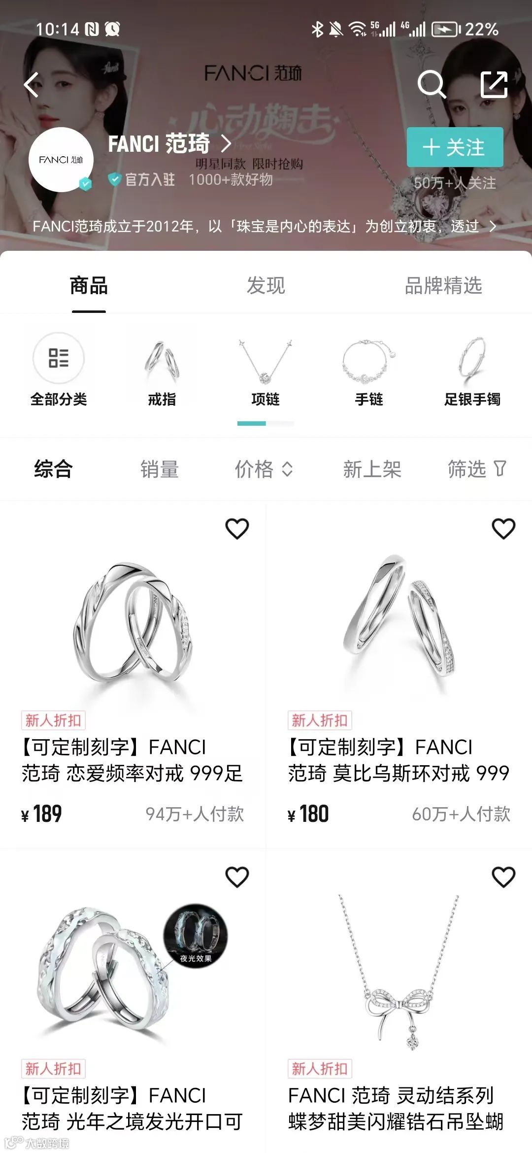 轻奢首饰类品牌FANCI范琦,就是从得物快速崛起的一个例子,如今累计GMV已超10亿。售价199元的恋爱频率对戒,共有82万多人付款;热门款莫比乌斯对戒,在得物的销量更是远超其他电商渠道十倍。