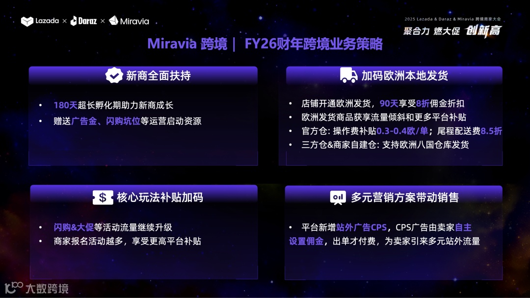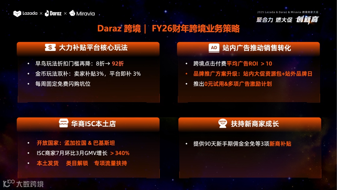 会上,Daraz和Miravia平台同步公布了跨境业务新财年策略,通过多元扶持及资源补贴助力商家在新财年明确经营重点并实现生意增长。
