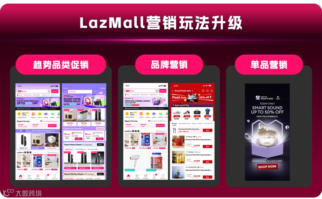 其中,Lazada大促流量资源包将为商家提供在大促期间的一站式广告投放解决方案,根据国家站点大促节奏,智能调节推广目标、每日预算和竞价,帮助商家实现收益最大化。对比未使用大促流量资源包的商家,持续使用的商家GMV增速超50%。