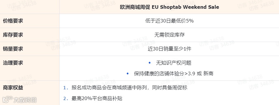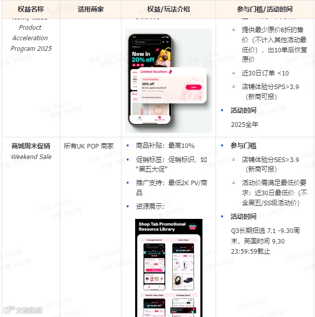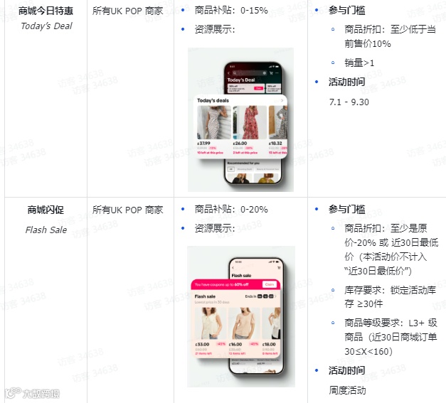 涵盖“新品加速计划”、“Weekend Sale”、“今日特惠”、“Flash Sale”等活动,平台提供最高30%商品补贴与流量支持。
