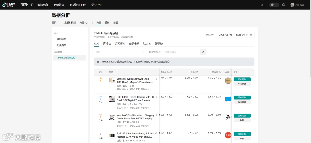 TikTok Shop英国站构建从冷启到爆发的完整成长路径,覆盖大盘与重点商家。