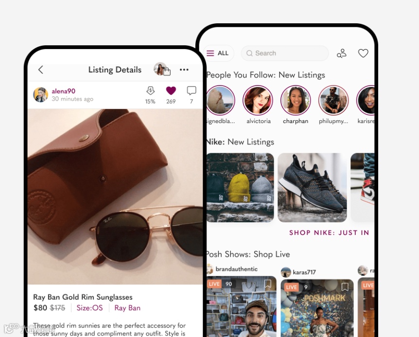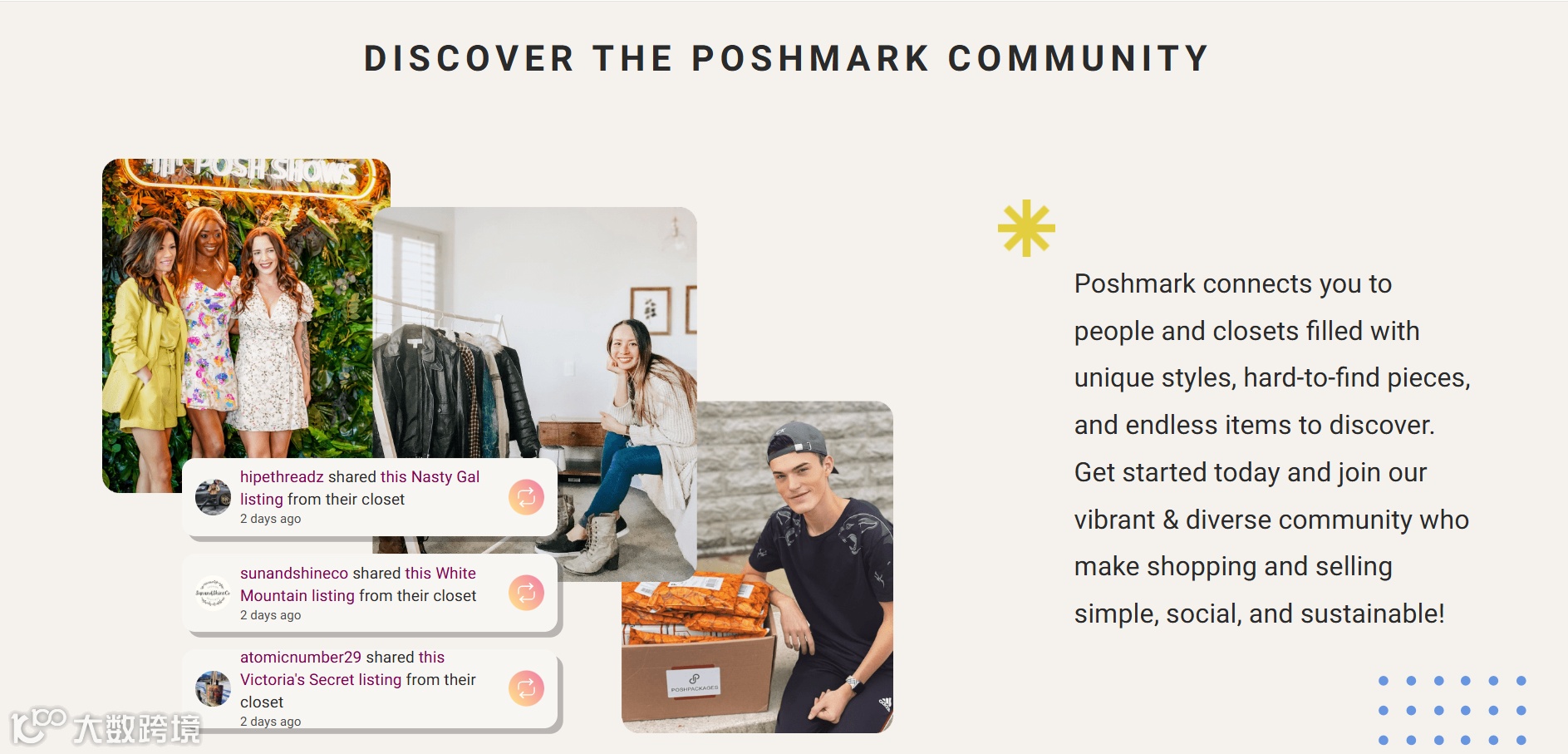 POSHMARK具有突出的社交属性,社交媒体内容可被一次性连接上平台分享。