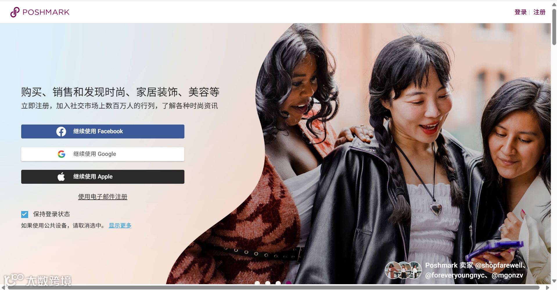POSHMARK和大多数二手交易平台一样,拥有网页端和APP应用,为了便于管理,我们选择网页端注册。