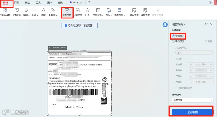 C: 使用WPS智能裁剪功能优化图片并保存;