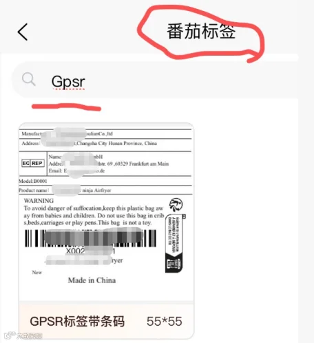 第一步:在手机端下载“番茄打印”类打印软件,搜索“GPSR”获取标准模板。