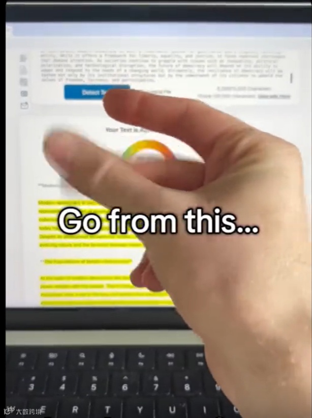 还有一个例子,我们展示了把百分百AI生成的文本变成像人写的文本的过程。视频火了后,销量马上就上来了。原视频大概有15万播放量,伊尼的翻拍版有150万播放量。