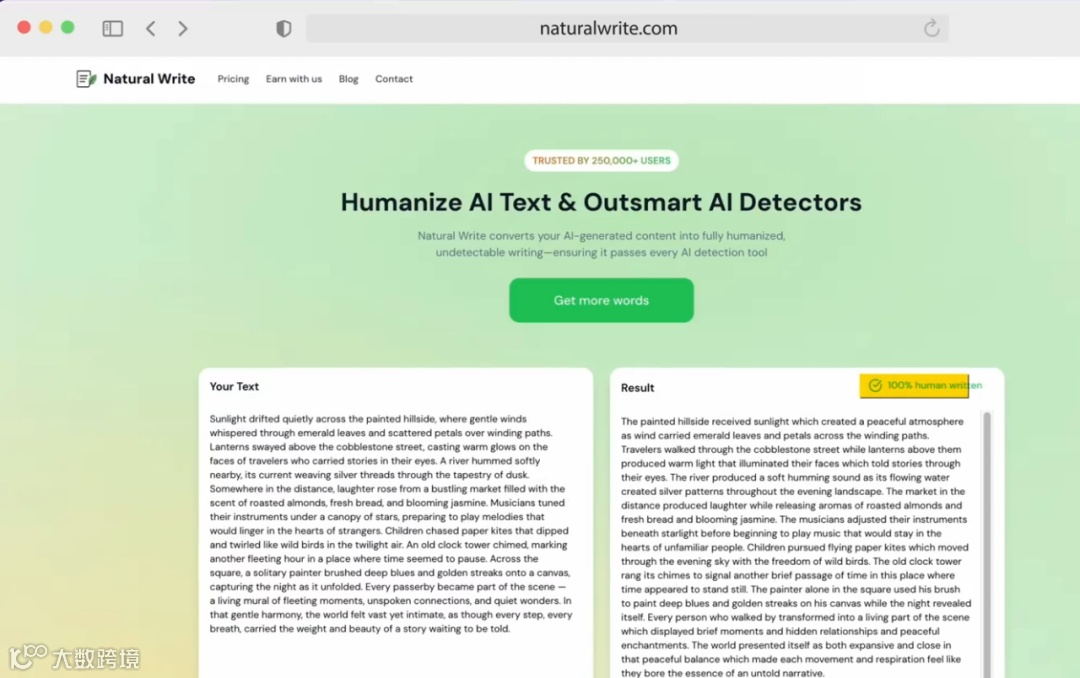 这款AI工具叫 Natural Write , 概念很简单,用户输入一段 AI生成的文本,点击“人性化”按钮,就能得到百分百像人写的文本,还能绕过大多数AI检测器。在学校和大学,学生用得比较多,企业里的营销人员也会用。它们发现很多关于“人性化写作工具”的视频,就想自己也能做,在TikTok上推广也容易,毕竟是热门话题。于是花两周做了产品,开始推广,还真成了。