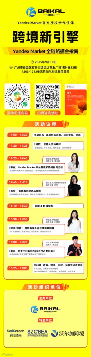 若您正瞄准俄罗斯电商蓝海、渴望抢占 Yandex Market 掘金先机,这场汇聚实战干货与优质资源的沙龙,便是您布局市场、抢占红利的绝佳契机!诚邀莅临,与资深大咖同行,携手在跨境之路上乘风破浪,一同解锁俄罗斯市场的无限增长可能!