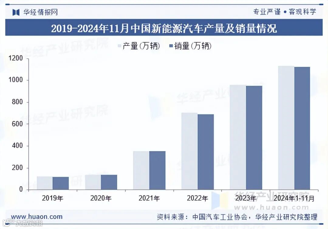 在新能源汽车领域,碳化硅陶瓷广泛应用于制动系统部件、电池包结构件等关键部位,凭借其高热导率与高温稳定性,有效提升电池与电机在高负荷工况下的散热效率与运行可靠性,助力整车安全性与耐久性提升。2024年1-11月,我国新能源汽车产销量分别达1134.5万辆和1126.2万辆,同比增长34.6%和35.6%,为碳化硅陶瓷带来持续增长的市场需求。