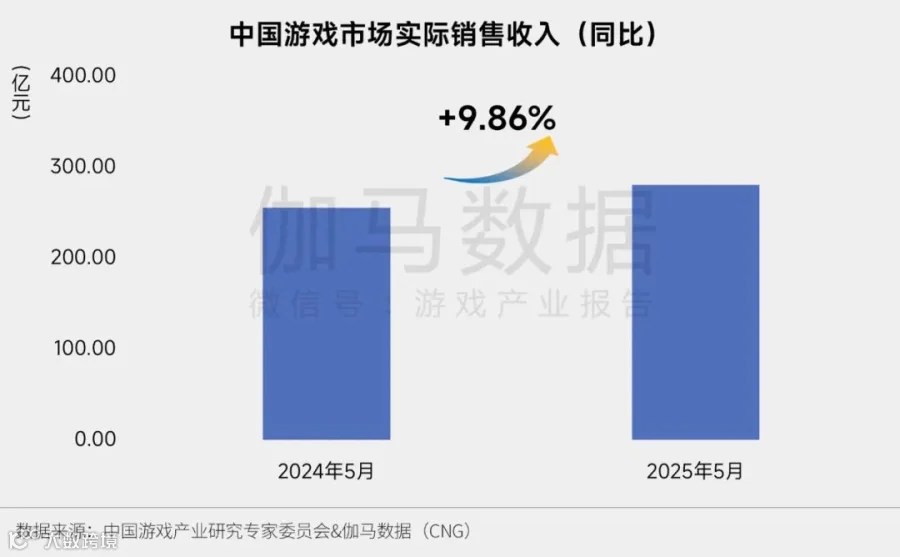 2025年5月游戏市场规模同比增9.86%至280.51亿元