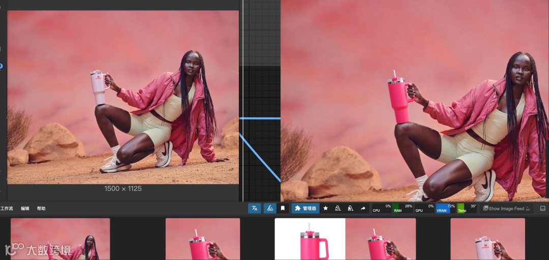 借助ComfyUI工作流API,实现图片生成全流程自动化。单人日均可完成数万款原创产品上架,涵盖产品图、标题、详情页等内容,全部保持原创性。