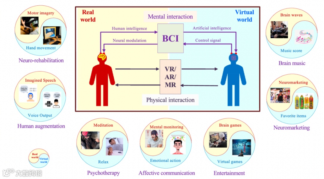 元宇宙融合:脑机接口将推动元宇宙从物理交互迈向智能交互,实现情感、意图与身份的直接映射,拓展至神经康复、心理治疗、教育及神经营销等场景。