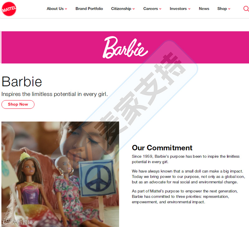 Mattel,Inc.于1948年在美国加州成立,是全球最大的玩具公司之一,主要从事设计、制造和销往全世界的各种玩具产品。在儿童产品的设计、生产、销售方面处于领导地位。旗下有Barbie芭比娃娃,UNO,Thomas & Friends托马斯和朋友们,Hot Wheels风火轮,American Girl美国女孩,和Fisher-Price费雪-普莱斯等品牌。