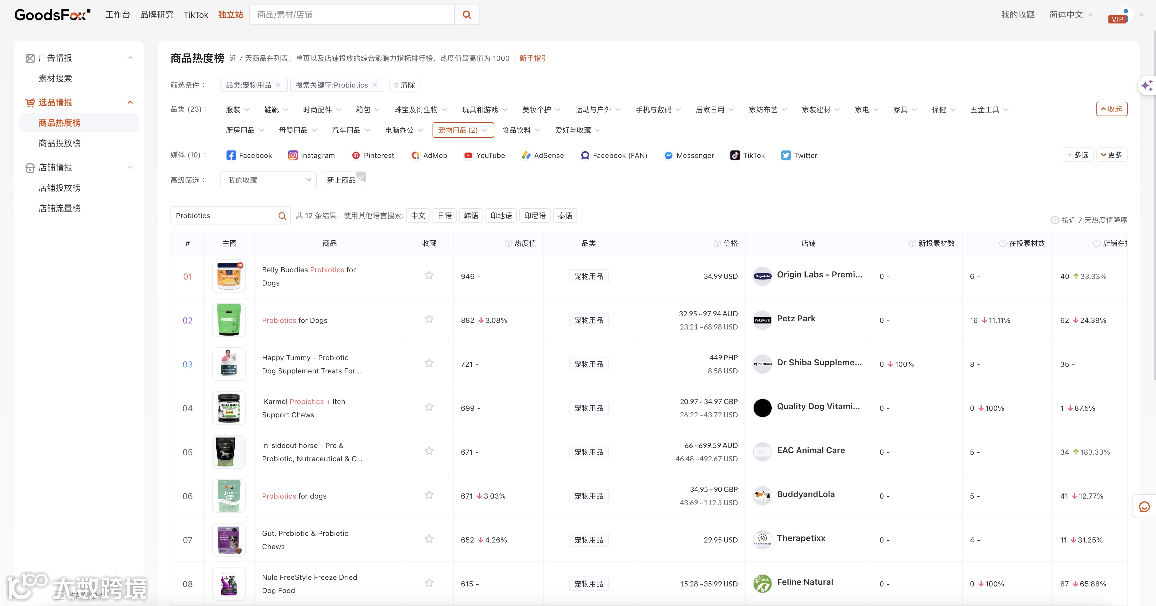 研究表明,预计到2027年,宠物补品行业规模将达到10.5亿美元。目前市场上流行的宠物补品包括狗维生素、猫鱼油和狗益生菌,而宠物益生菌成为其中热门产品,有效帮助有消化问题和食物过敏的宠物。据悉,过去5年中,“狗益生菌”的搜索量增长了91%。在 TikTok 平台上关于狗和猫益生菌的视频观看次数超过了3.86亿次。去年,约有7%的宠物主人购买了有益肠道的益生菌。