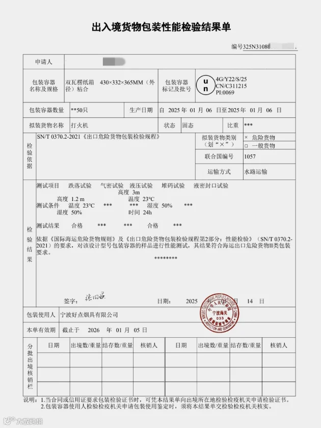 - 包装容器的《出境危险货物包装容器性能检验结果单》;
