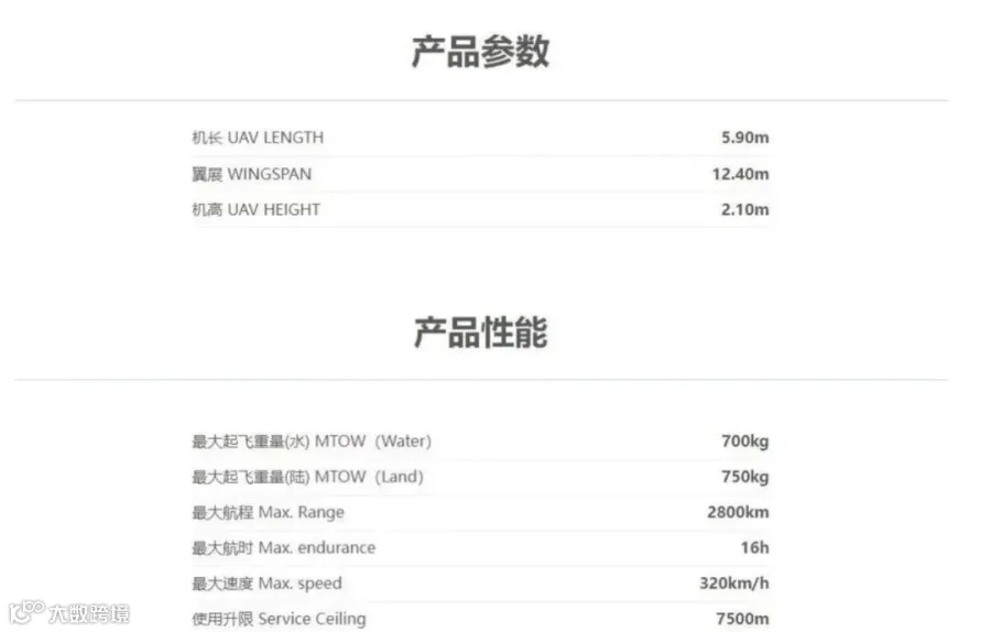 采用大展弦比双尾撑布局,复合材料流线型机身,气动效率高,巡航速度快,续航时间长。