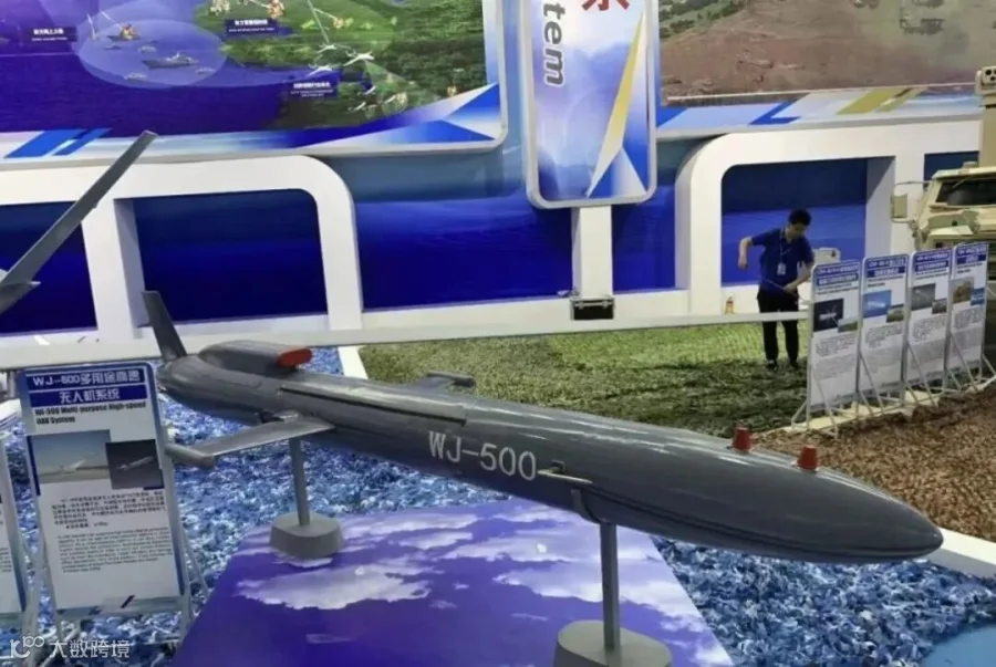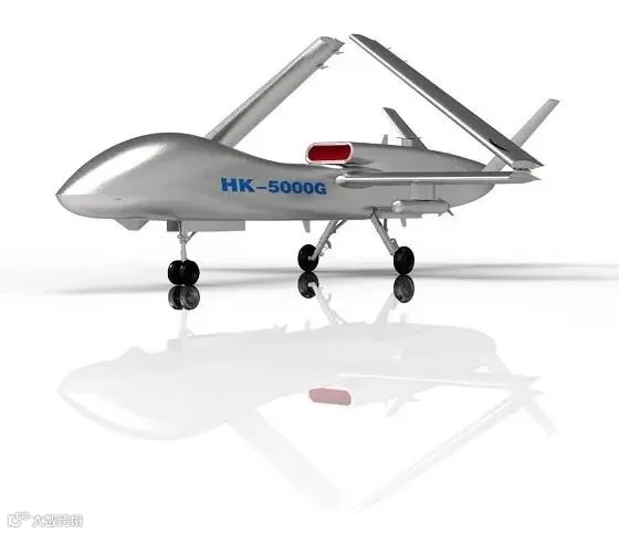 HK-5000G:喷气式中高空长航时无人机,配备卫星通信天线,具备多枚导弹挂载潜力。