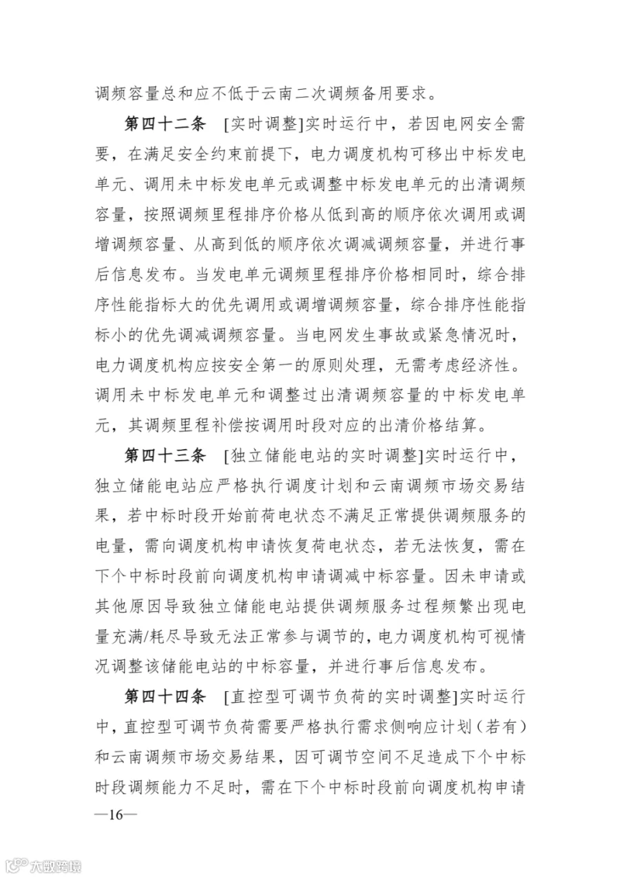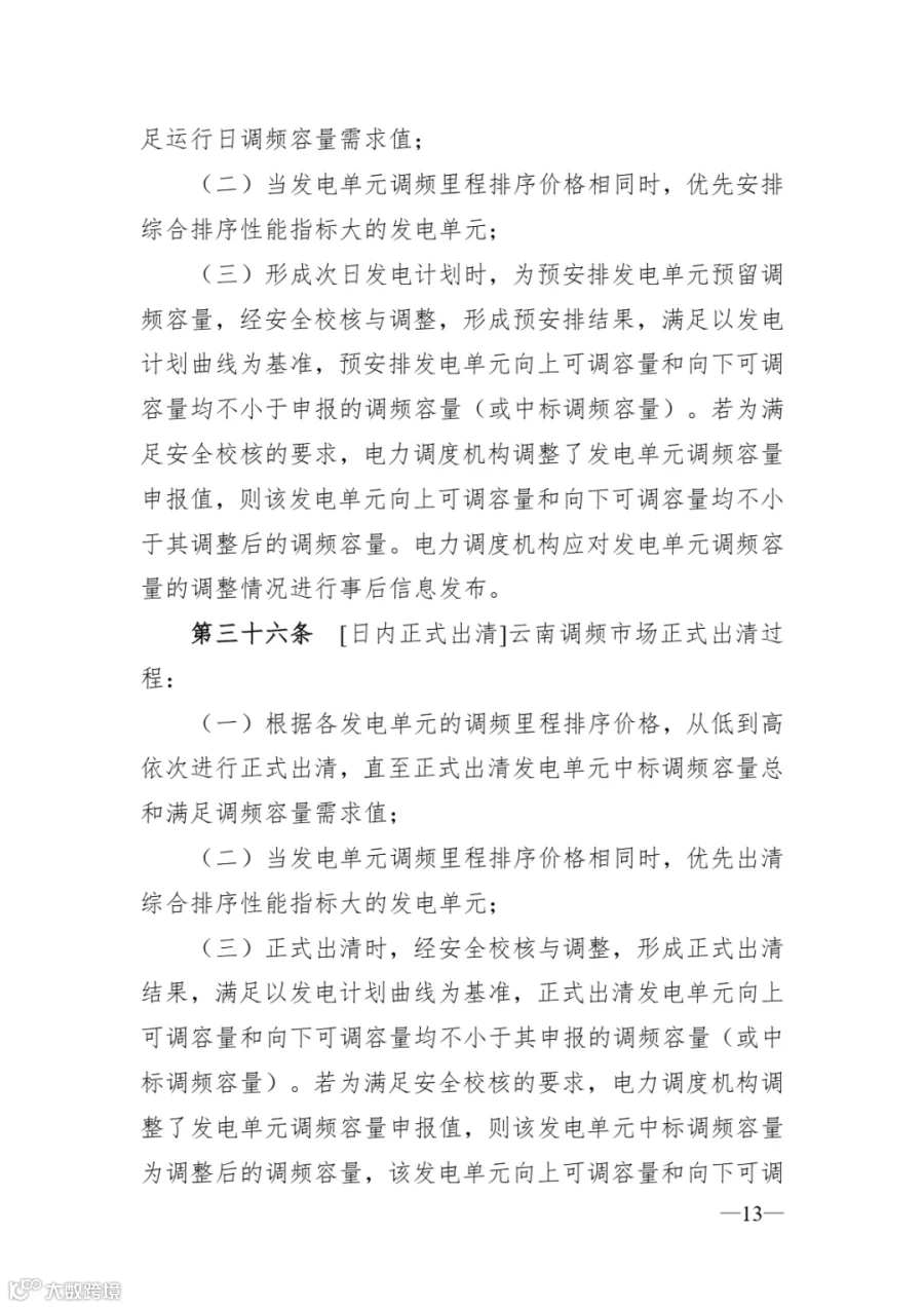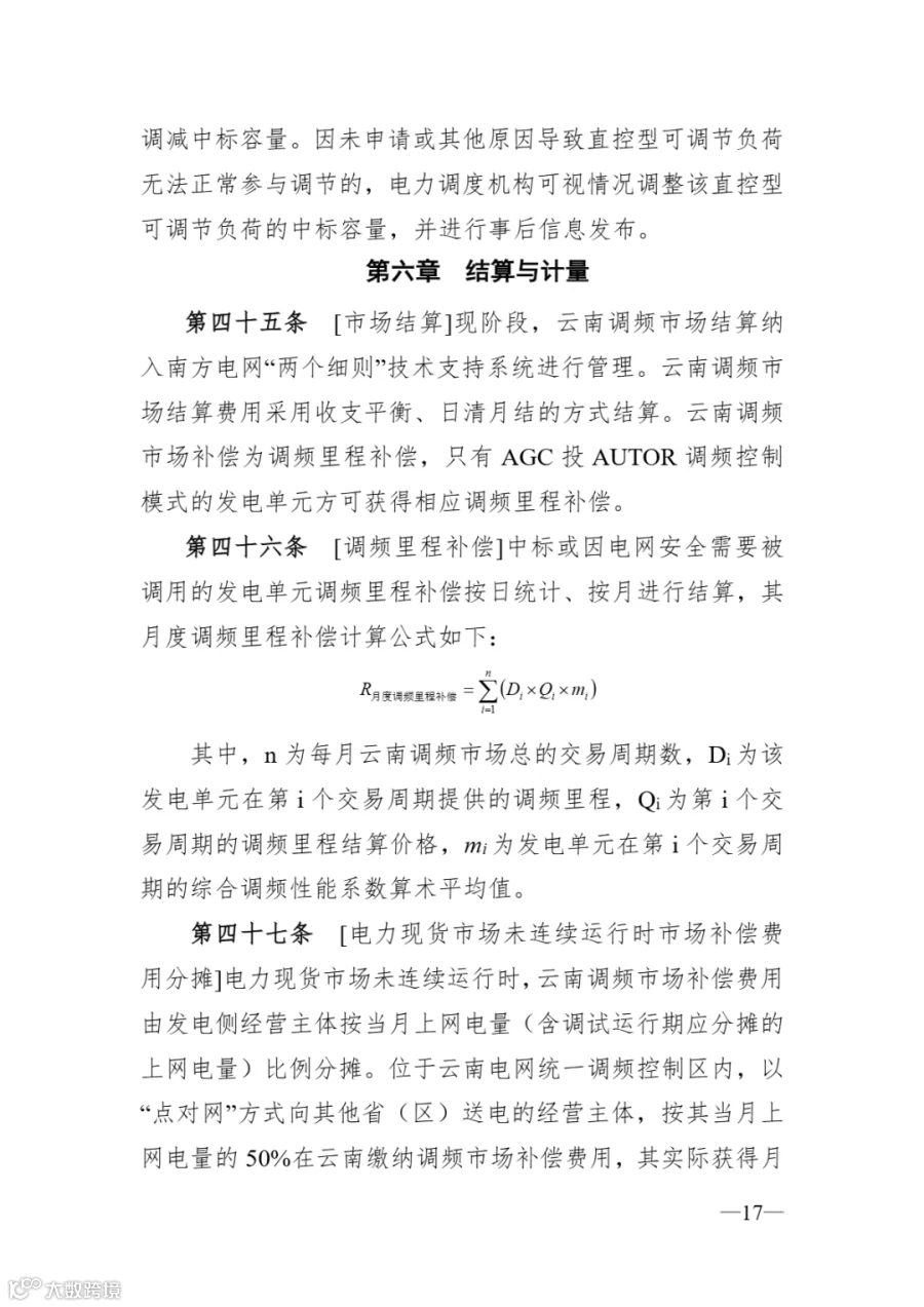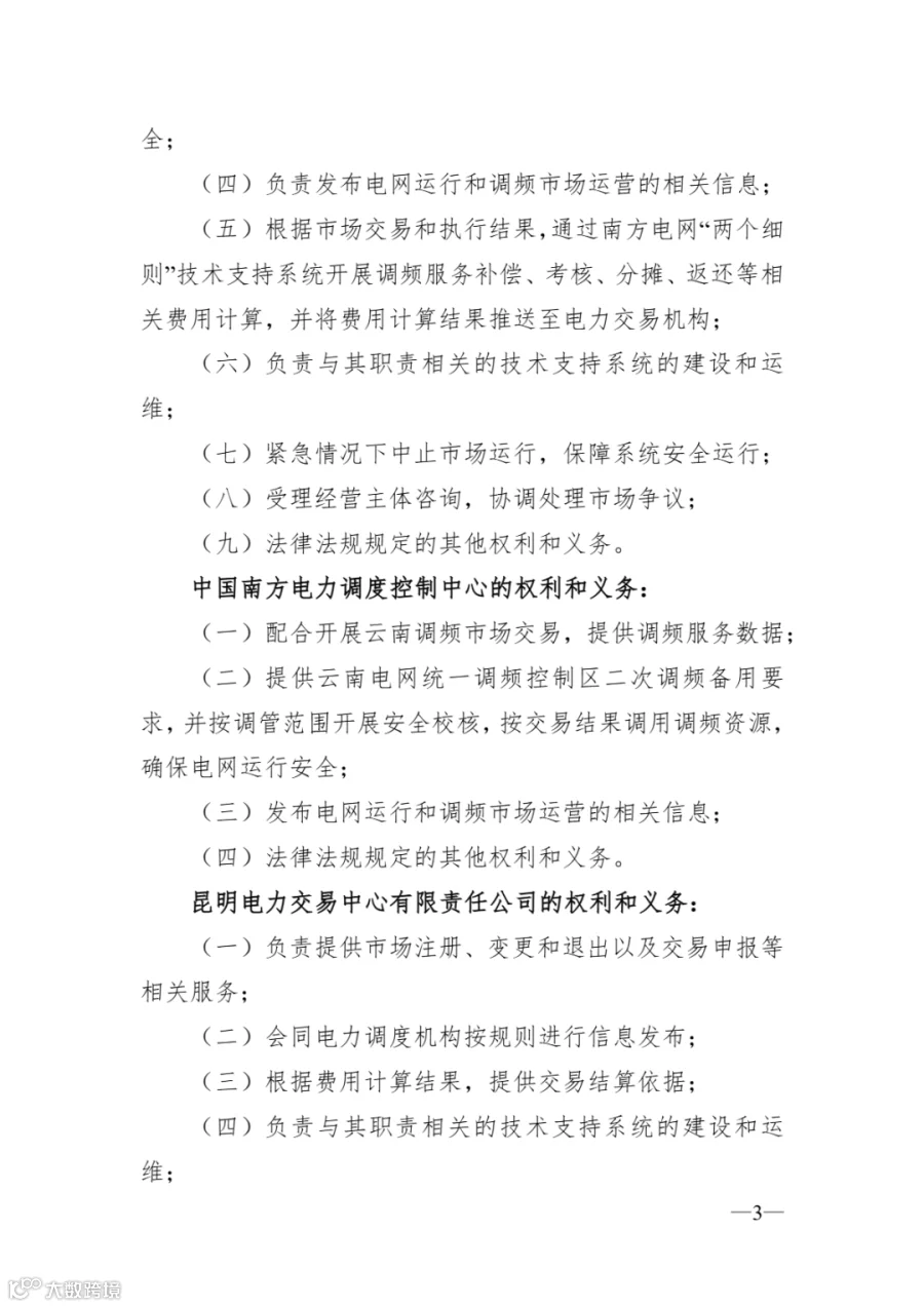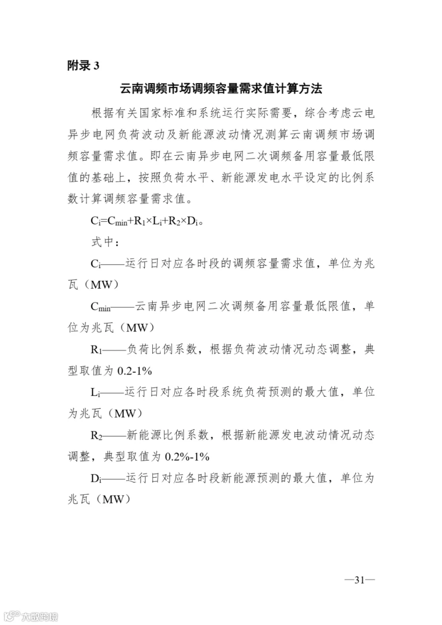 《云南调频辅助服务市场实施细则》