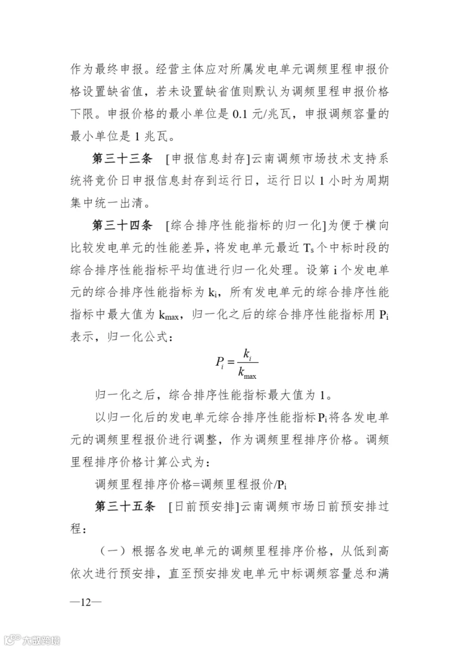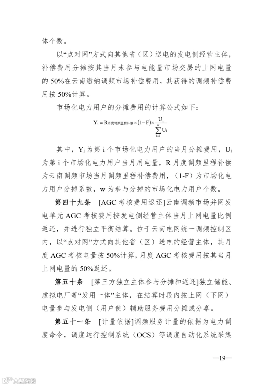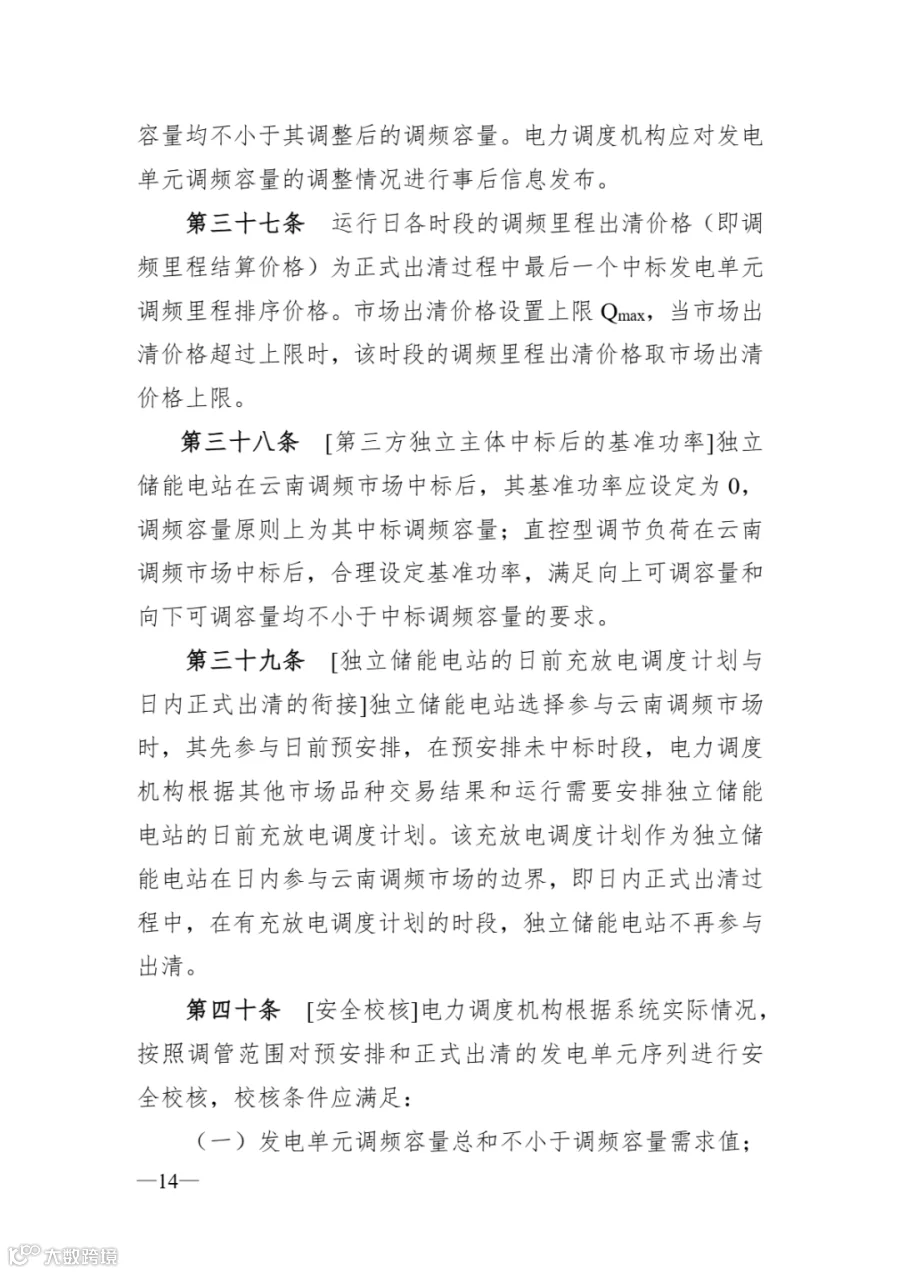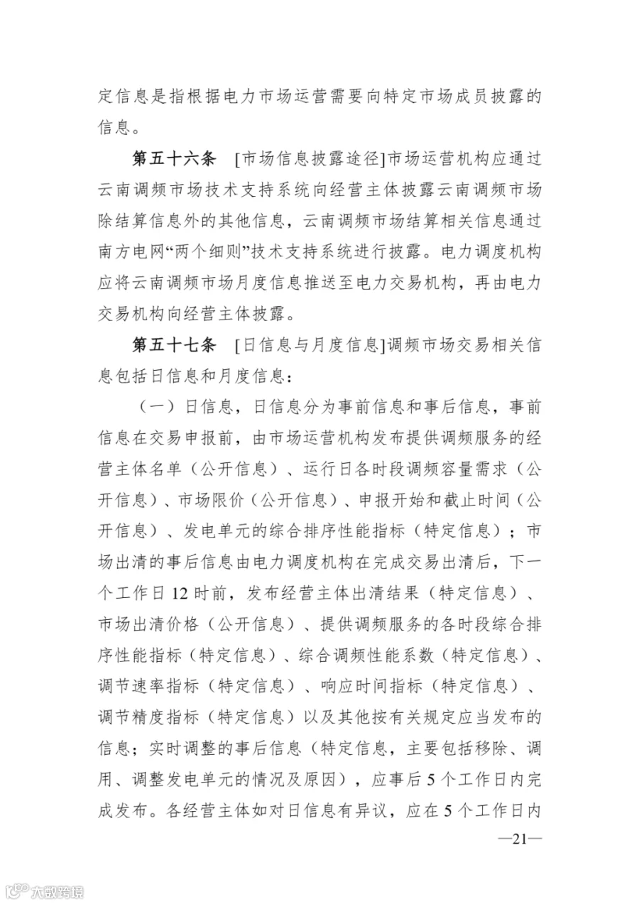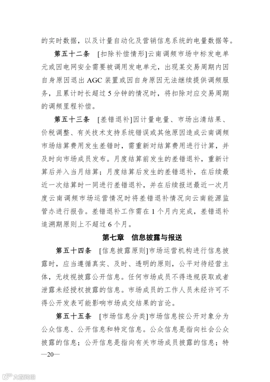 《云南调频辅助服务市场实施细则》