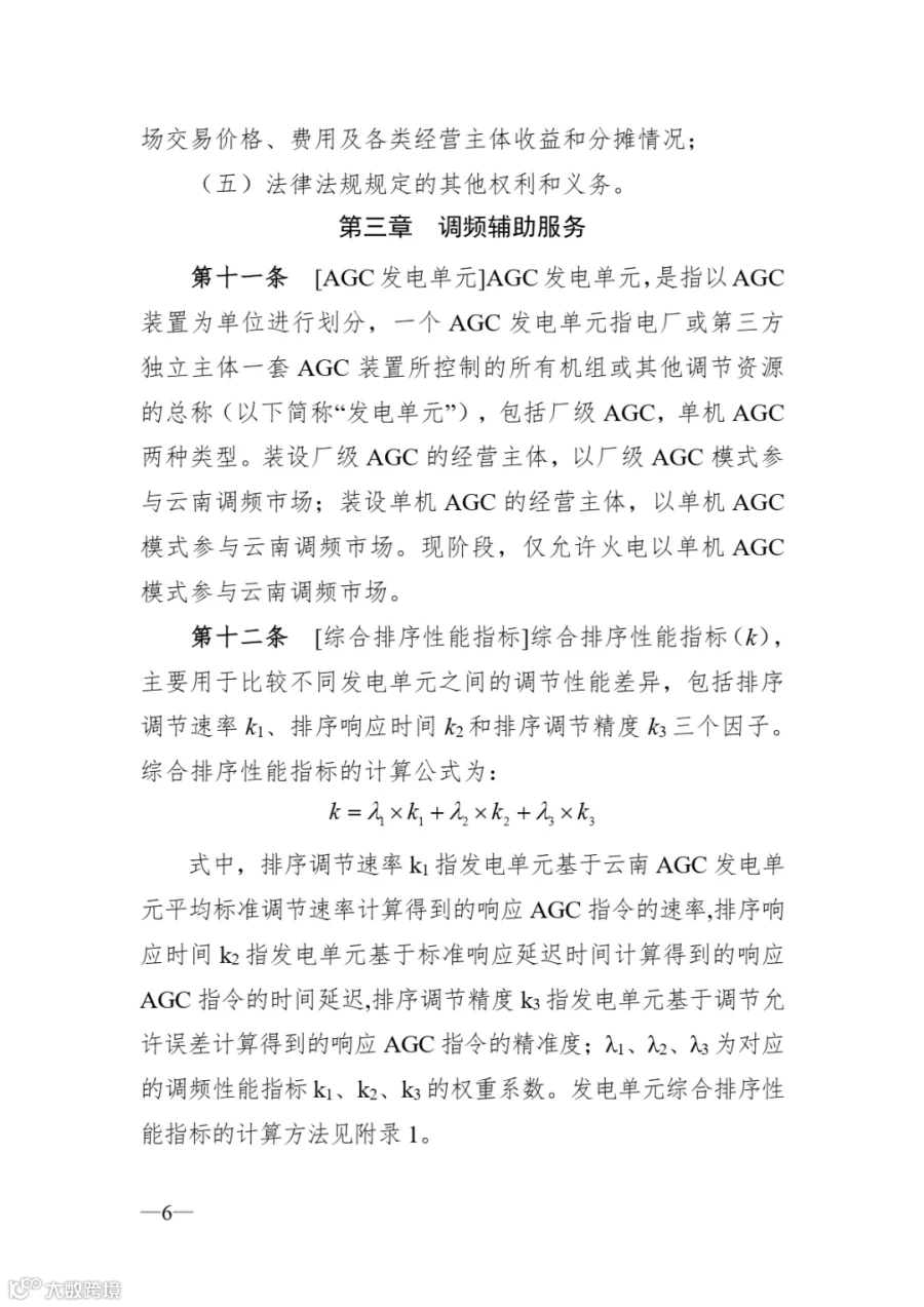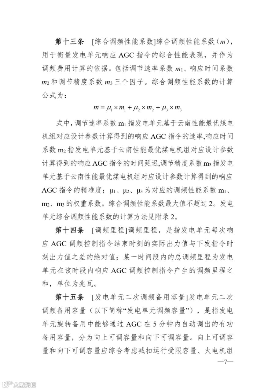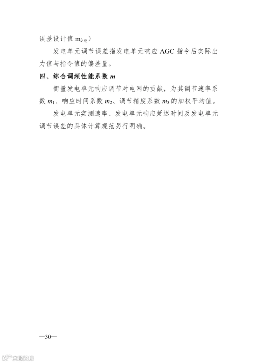 文件明确:频辅助服务(以下简称“调频服 务”),是指发电机或独立第三方辅助服务提供者,能够通过 自动发电控制装置(AGC)或自动