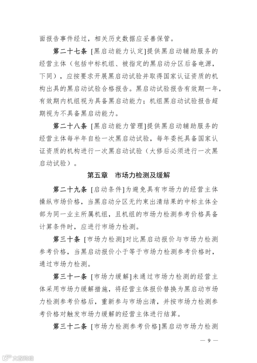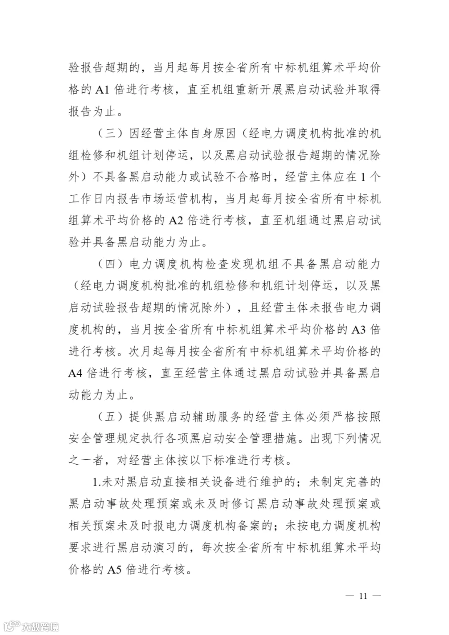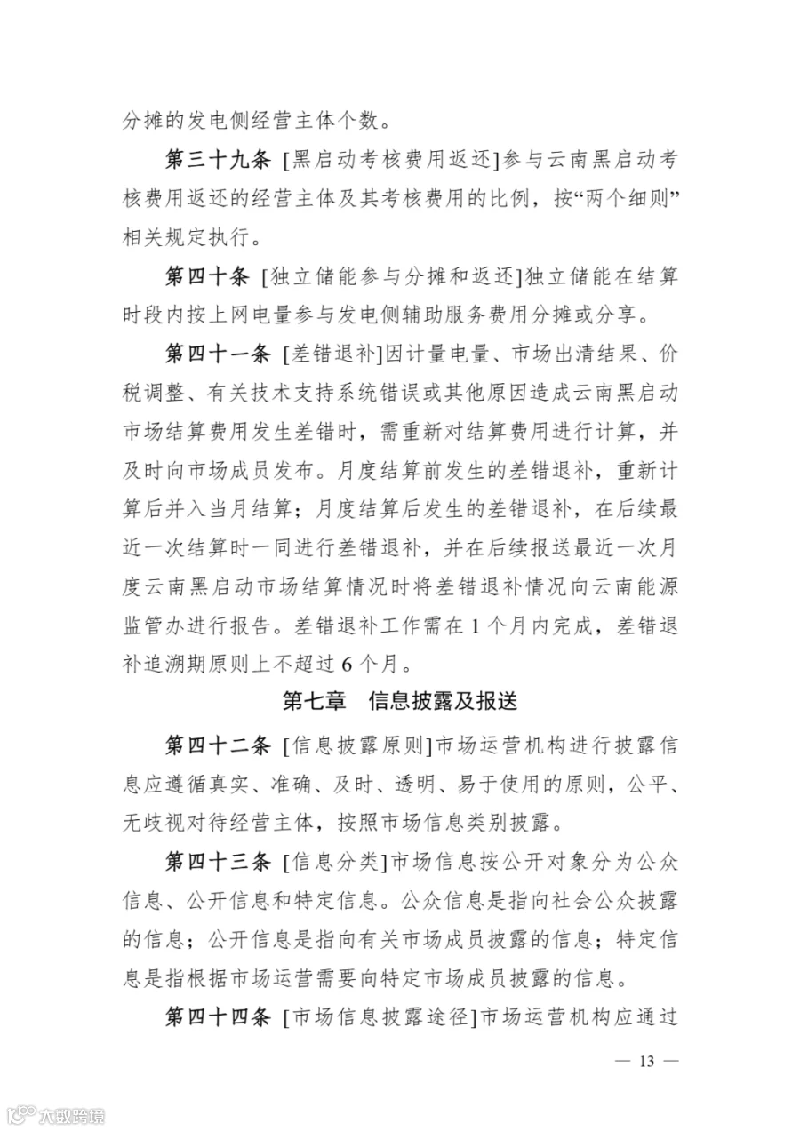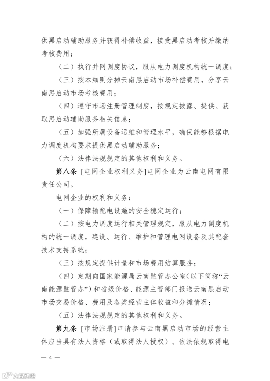 《云南黑启动辅助服务市场实施细则》明确: