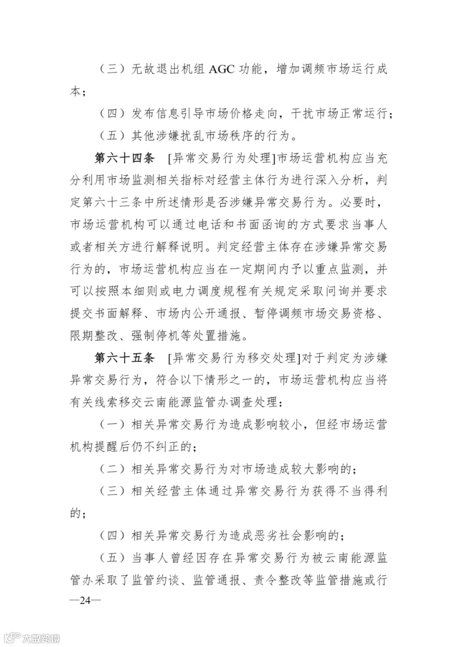 电力市场运营机构应密切关注细则执行情况,强化市场运行监测,动态评估规则适用性,及时防范化解风险。各市场成员在执行过程中如遇重大问题,及时
