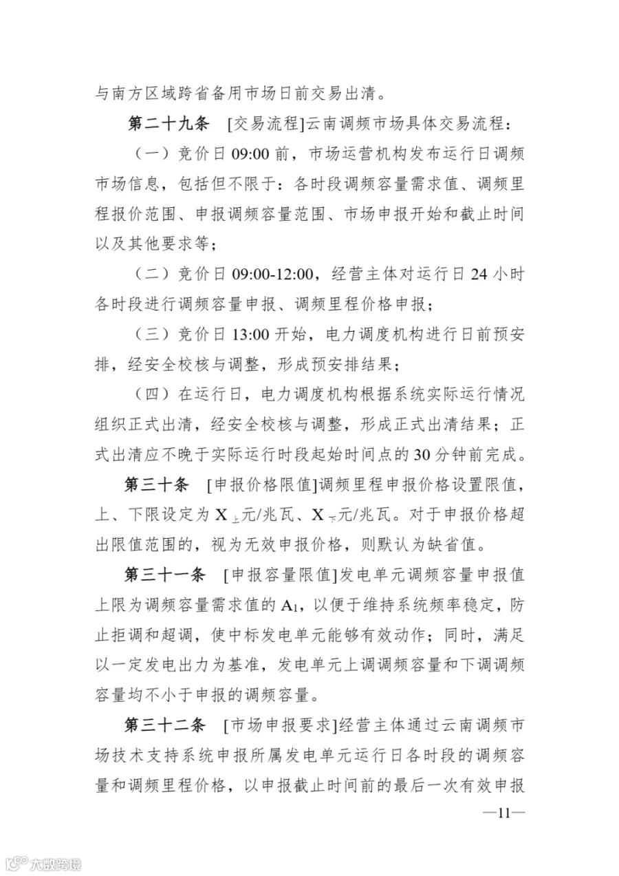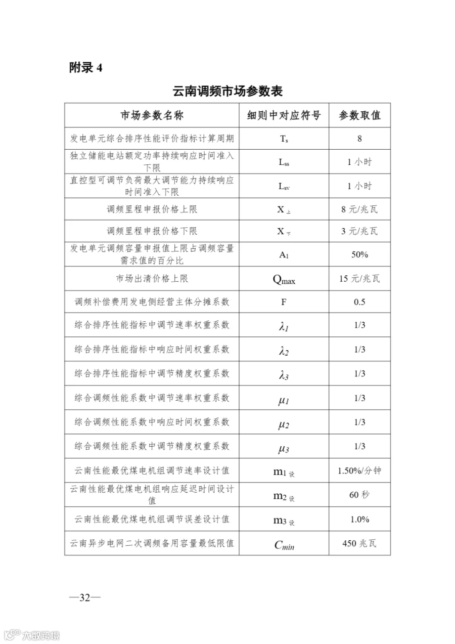 云南:调频里程申报价格3元-8元/兆瓦,黑启动辅助服务使用补偿300万元/台次