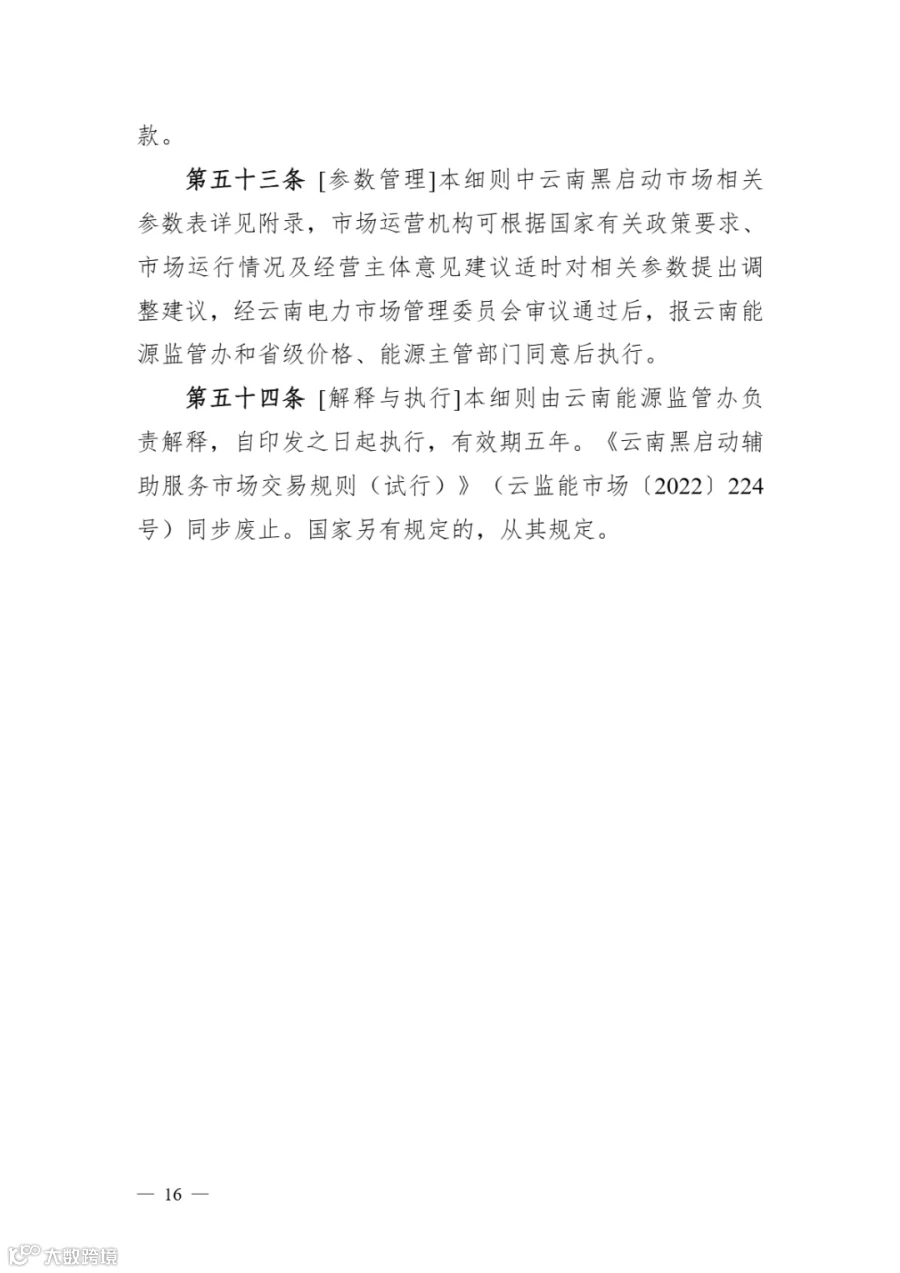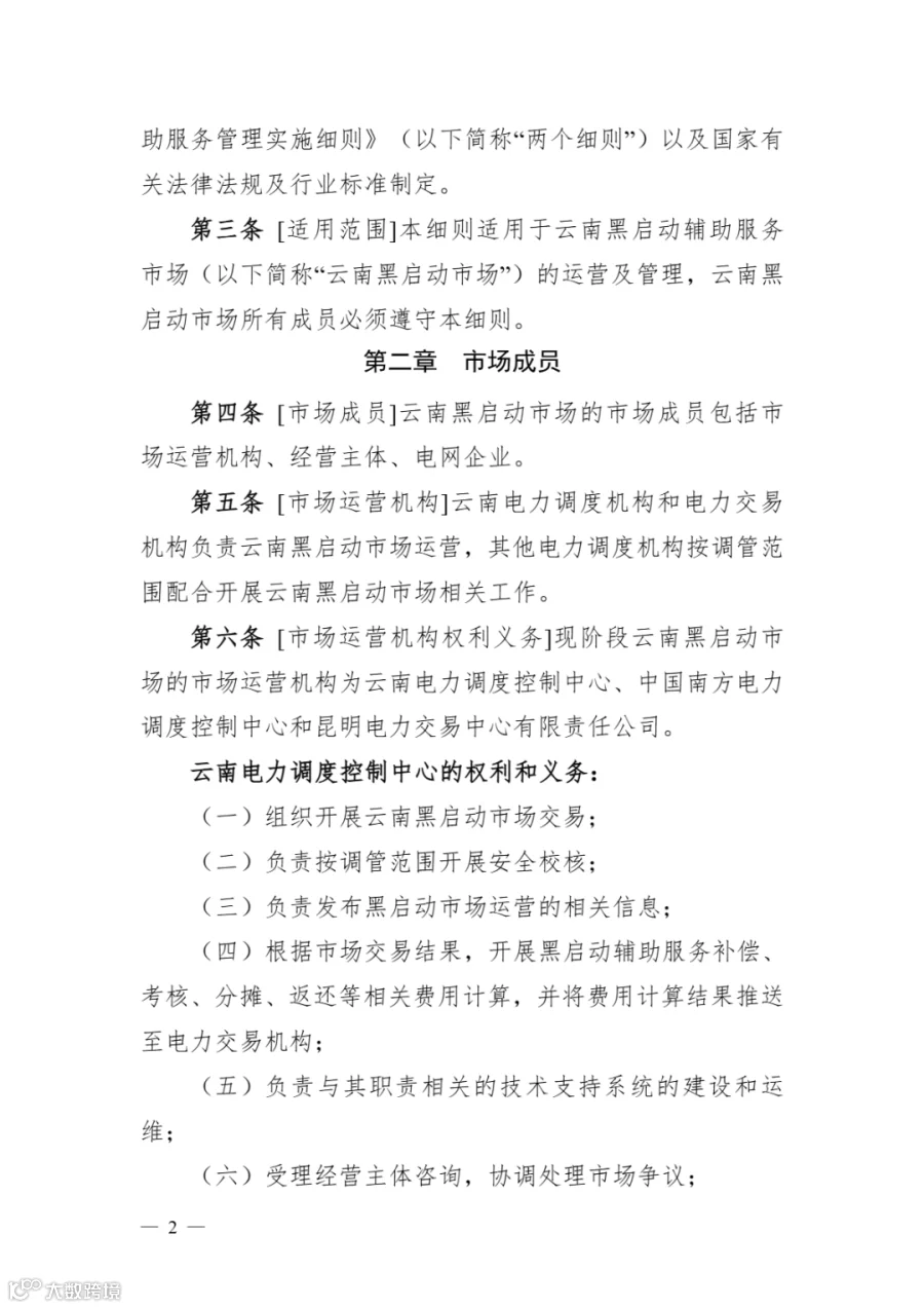市场实施细则》《云南黑启动辅助服务市场实施细则》