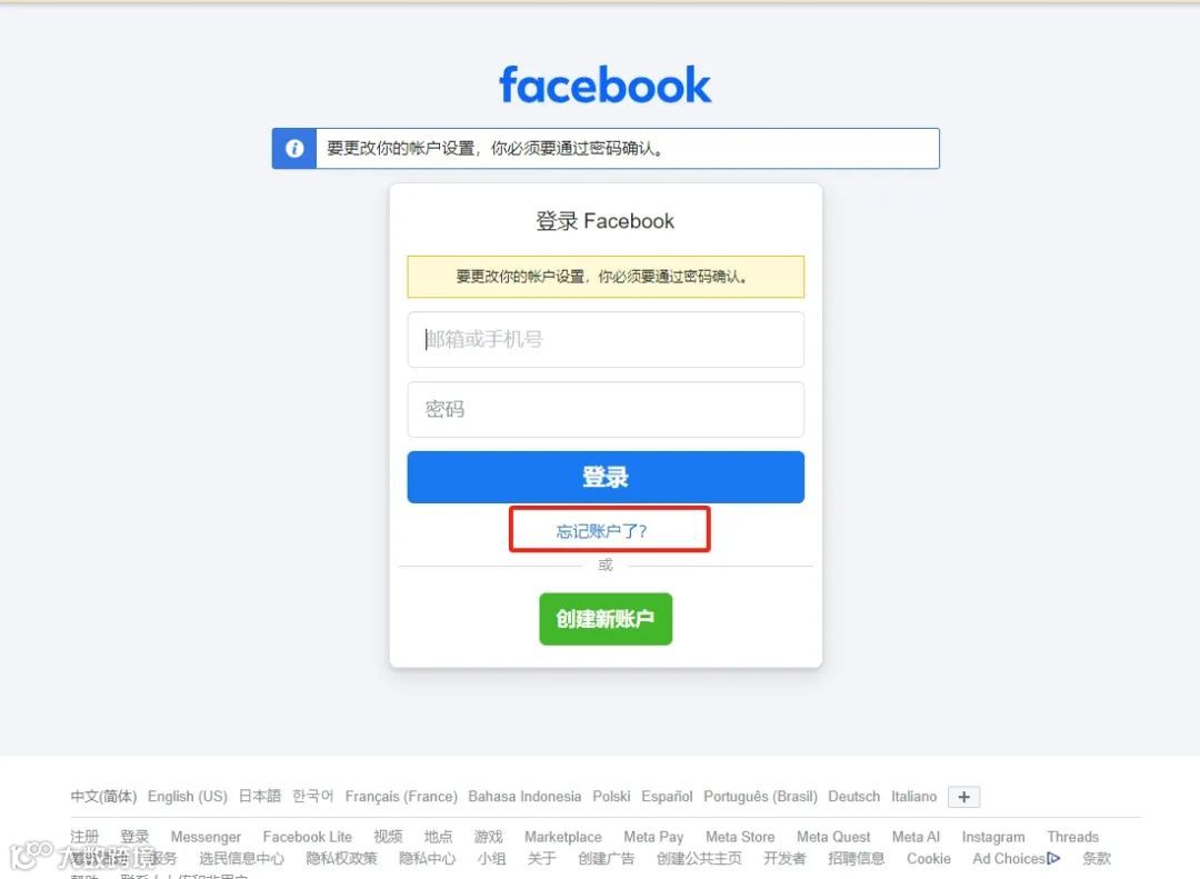 ·在Facebook登录页面选择“忘记密码?”或类似选项,尝试通过关联的邮箱或电话号码恢复账户。
