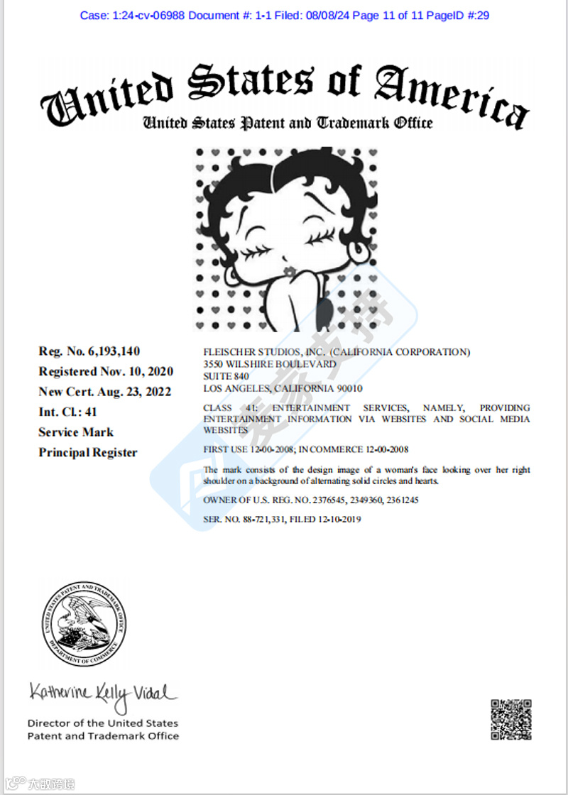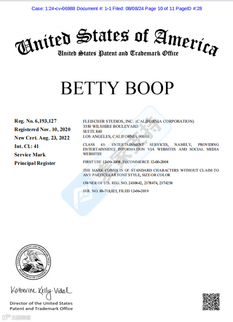 | 24-cv-06988 | 2024-08-08 | Aronberg Goldgehn Davis & Garmisa | BETTY BOOP 商标 |
