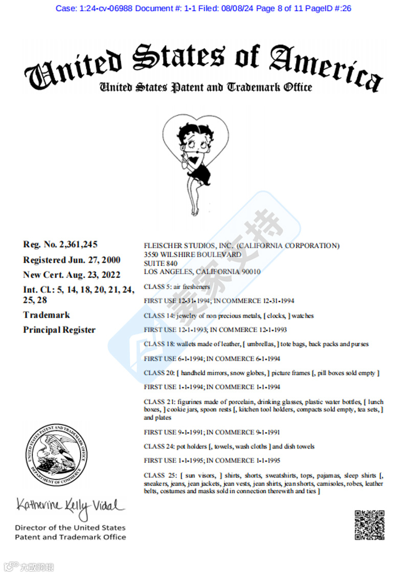 在本案中,Betty Boop贝蒂娃娃于24年8月8日再次展开商标维权行动,此次涉及的商标样式多达8种。在此,麦家支持提醒广大卖家朋友,倘若未经授权便使用相关商标,将会面临TRO侵权风险,各位跨境卖家应尽快自行检查核对。