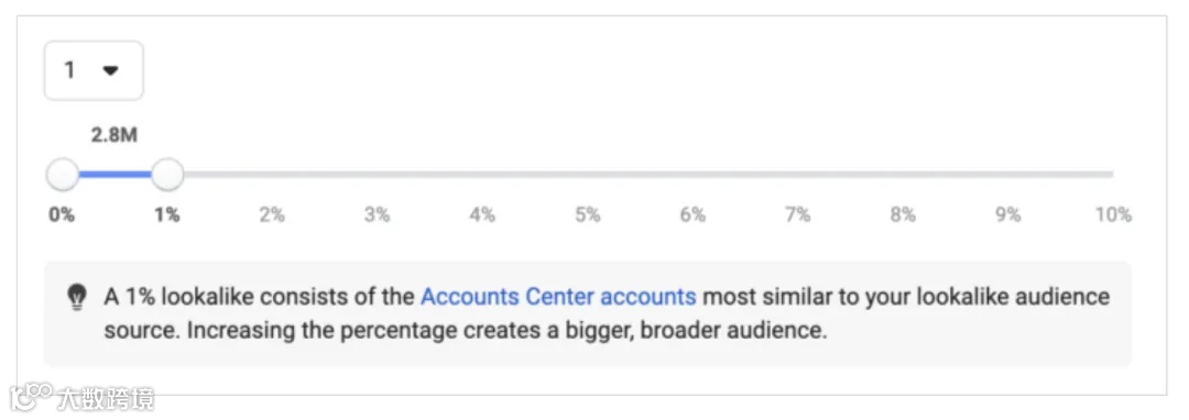 Facebook 上的受众定位是非常全面的。你可以按年龄、地点、兴趣、行为和生活事件缩小受众范围。只要你有充足的像素数据, Meta 就能帮助你有效优化你的受众群体。此外,Facebook 还可以帮助你发现客户的偏好。你可以调整百分比设置来选择匹配的紧密程度,比如较小的百分百能准确反应你现有的客户,更大的百分比可以创建更广泛的受众。