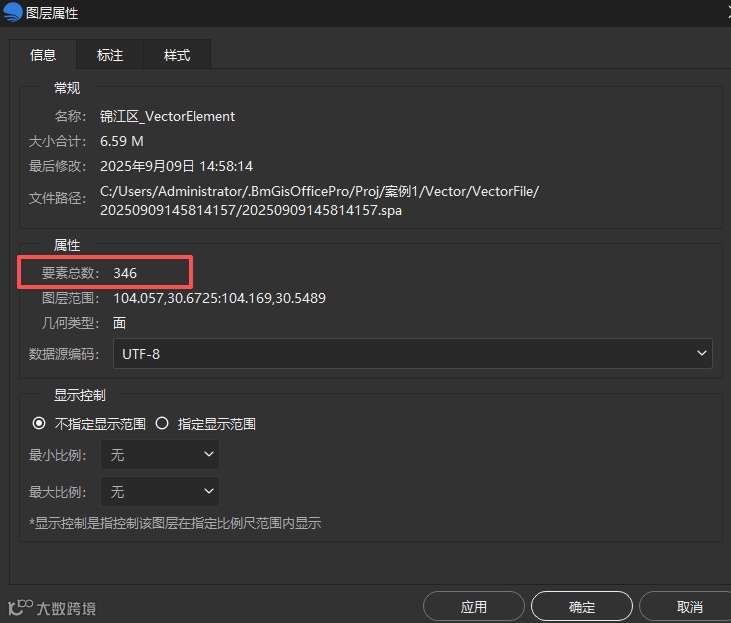 使用框选工具全选绿地斑块,软件右侧将显示要素总数,即为Ni;也可在图层属性中直接查看。
