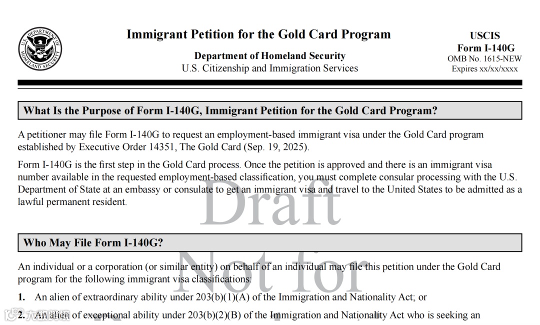 如今期限将至,移民局于11月18日向白宫预算管理办公室(OMB)提交了专属申请表I-140G草案,并在24小时内获批。这一动作标志着金卡正式进入“执行阶段”。