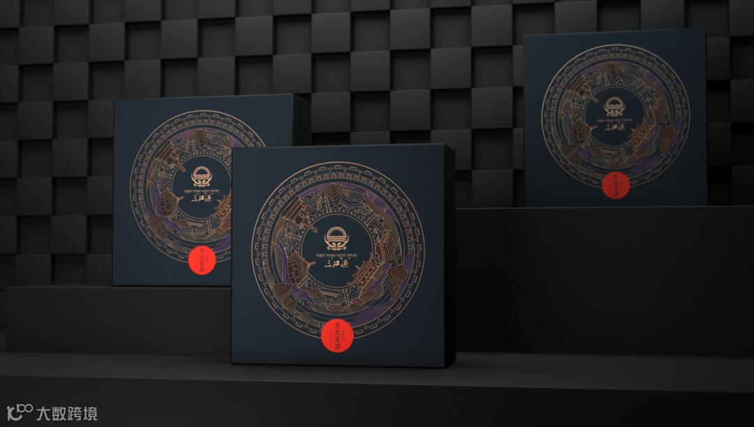 盒装经典款则减少了藏族元素的比重,保留圆形的构成方式,重新勾勒山水图景。以山水元素为主题展示三江源地域,更富有层次且与前两个图案更协调。