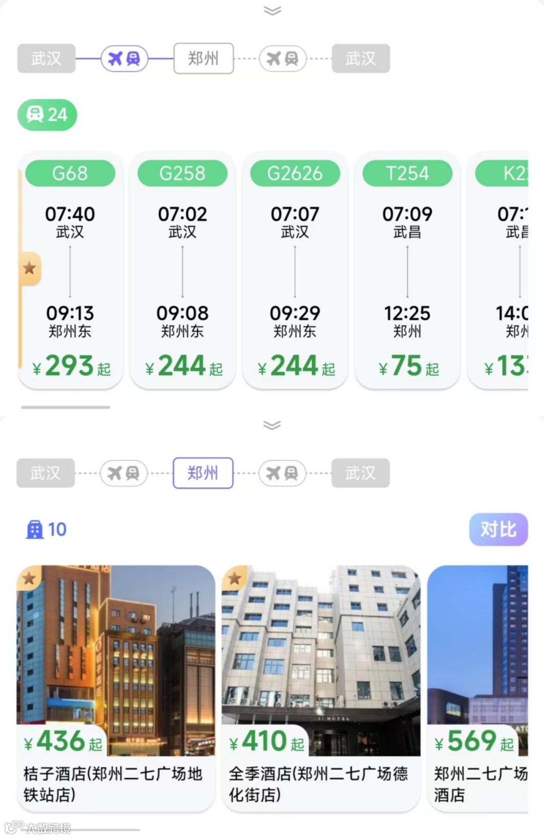 点开可以看到具体的价格、信息、评价等,还会贴心给出往返程和酒店每日价格变动信息,直接跳转到平台上进行预订或购买。