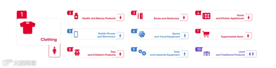 从细分类目看,服装、美容产品、书籍文具、厨房用具与手机和电子产品是最受伊朗消费者欢迎。