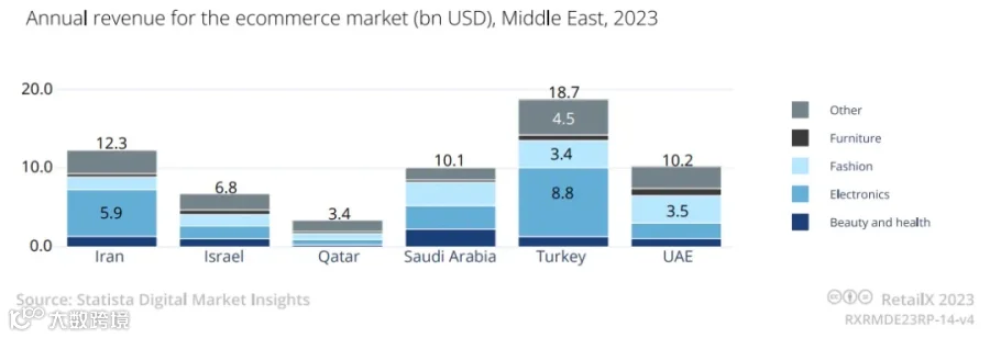 卡塔尔:2024年,卡塔尔电子商务市场的收入预计达34.4亿美元,用户渗透率达到41.5%。有72%的卡塔尔人网购,其中41%的订单通过移动端完成,卡塔尔的线上消费金额占全国零售总额的15%以上。