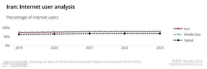 伊朗发展电子商务的优势在于其明显的人口红利与市场潜力。伊朗人口将近8300万,其中30岁以下的人口超过60%,这一年龄段的人群通常更加熟悉并愿意使用在线购物平台,消费倾向更加明显。2023年,伊朗的互联网用户占总人口的79%,高于世界平均水平,其中60%的伊朗人进行网购。