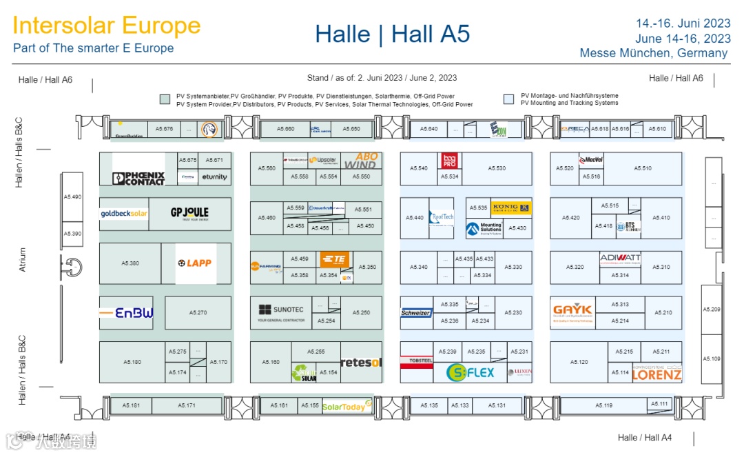 在全球太阳能光伏需求激增的大背景下,Intersolar Europe 2023作为全球规模最大、影响最深的太阳能专业展览交易会之一,在德国慕尼黑吹响了欧洲能源零碳的号角。本次展会汇聚了来自全球57个国家的参展商2469家,其中中国企业家近400家,覆盖太阳能光伏全产业链,向全球客户展现各自的行业竞争力和综合实力,共同探讨光伏行业前沿创新趋势及发展方向。