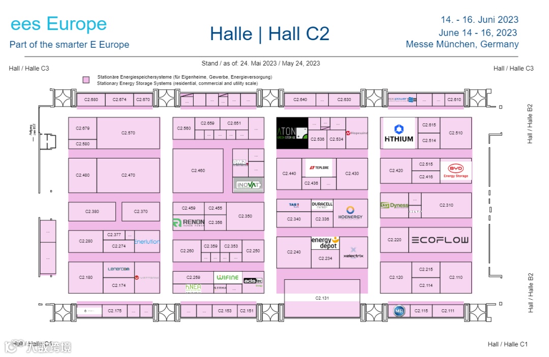 2023年,宁德时代、华为、比亚迪、海辰储能、阳光电源、鹏辉能源、瑞浦兰钧、亿纬锂能沃太能源、天合储能、科华数能、兰钧新能源、科陆电子、新能安、采日能源、晶科能源、三晶电气、华宝、正浩、拓邦、首航新能源、古瑞瓦特、弘正储能、隆基绿能等上百家储能企业赶赴德国慕尼黑Intersolar Europe 2023。